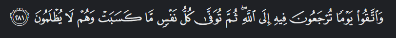 compensated for what it earned, and they will not be wronged.” (Quran 2:281)